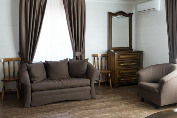 Уютные домики и гостевые апартаменты оснащены всем необходимым: комфортабельными спальнями, ванными комнатами с туалетными принадлежностями и кухнями, оборудованными современной бытовой техникой.