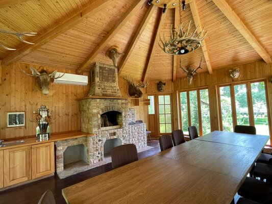 На территории экофермы располагается отдельный домик с панорамным остеклением для проведения особенных мероприятий вместительностью до 20 человек.