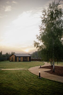 На территории комплекса вас ожидает баня на дровах, купель, ароматный травяной чай с медом и просторная обеденная зона. Здесь можно полностью забыть о городской суете и насладиться покоем.