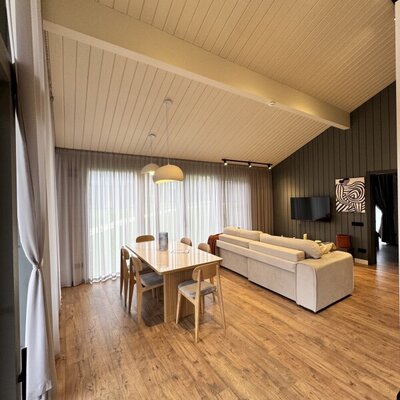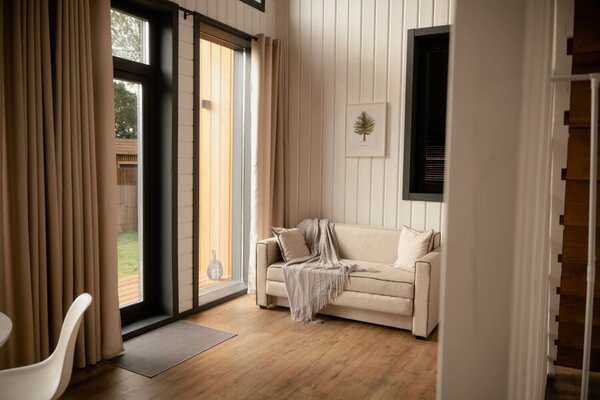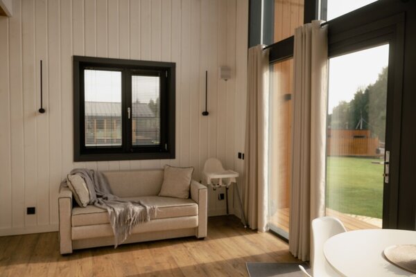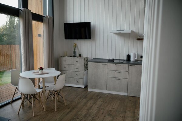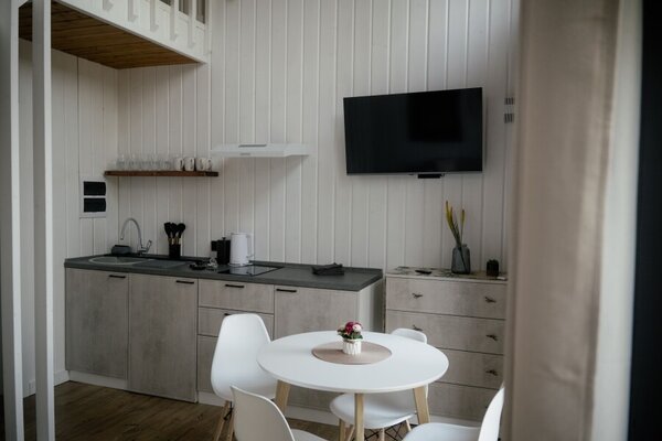 Гостевой дом предлагает уютные дома в стиле Барнхаус с современным ремонтом, а также все необходимые удобства для комфортного пребывания: индивидуальные зоны отдыха у каждого домика, тёплые полы, посуда, интернет и посудомоечная машина.
