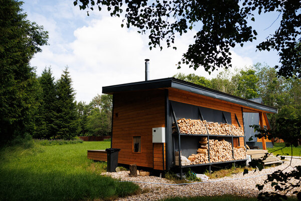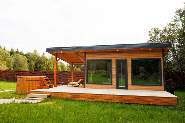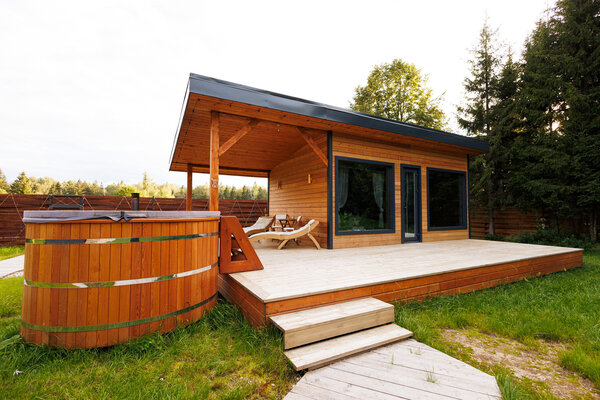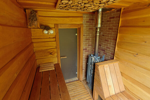 Дом-баня на дровах с панорамным окном в парной с прекрасным видом.