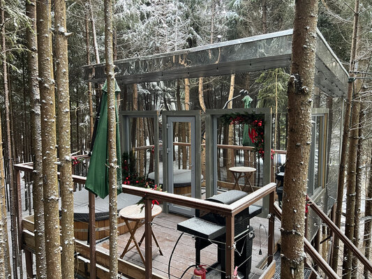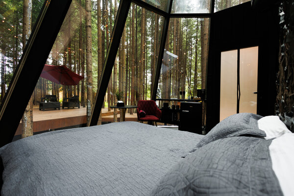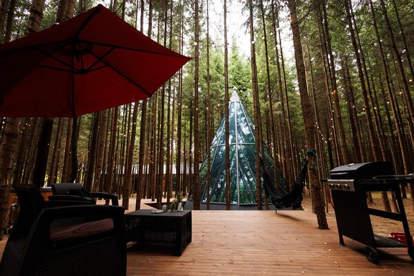 - Первая брачная ночь в стеклянном доме-пирамиде или зеркальном доме на дереве;