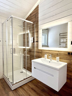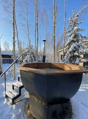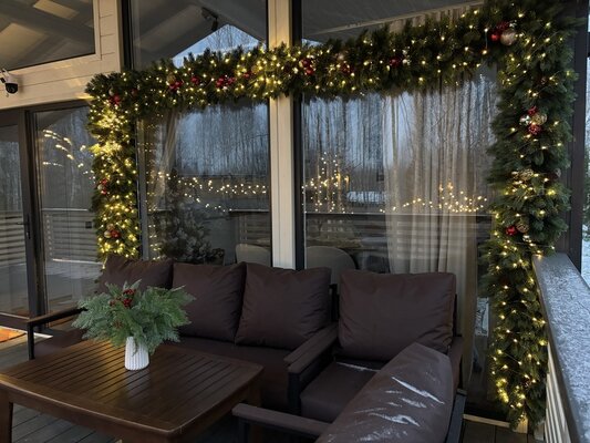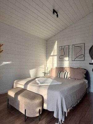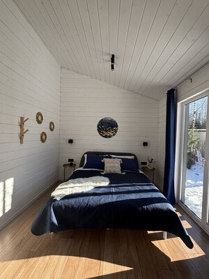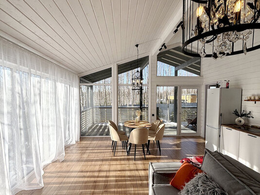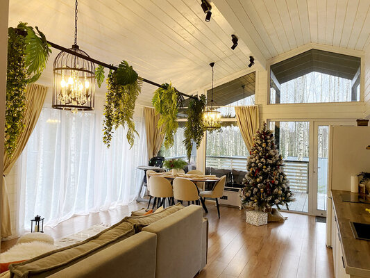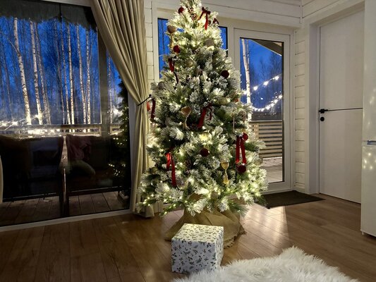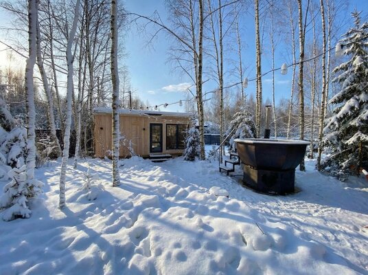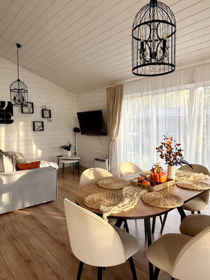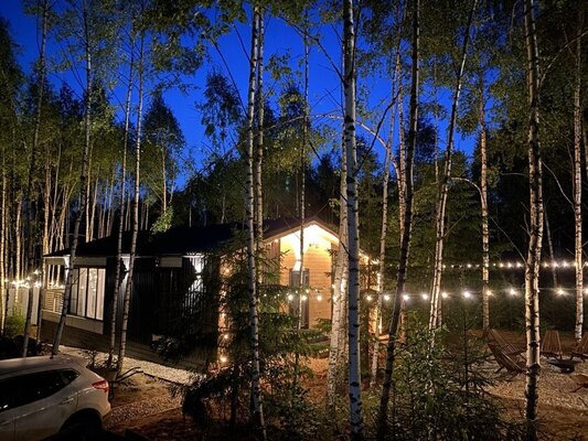 Дом «ЁлкиШале» расположен всего в 1,5 часах езды на запад и предлагает комфортное проживание для компаний до 12 человек. Современный дом оснащен всем необходимым: просторной кухней-гостиной с панорамными окнами, тремя уютными спальнями, террасой и даже детской кроваткой. Насладитесь просмотром фильмов на огромном проекционном экране, чистой питьевой водой благодаря системе очистки и комфортной температурой благодаря кондиционеру. К вашим услугам баня, сибирский чан, зоны для барбекю и костра. В окрестностях доступны развлечения на любой вкус: сапы, квадроциклы, рыбалка, охота, прогулки по лесу, караоке и доставка фермерских продуктов.