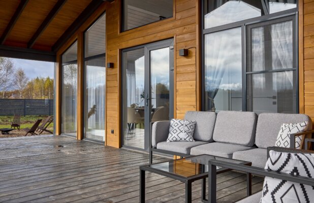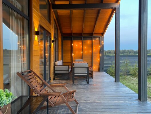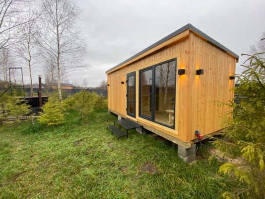Баня 5.5х2.3 м для 4 человек, с парилкой, комнатой отдыха и предбанником.