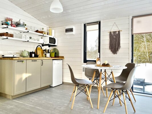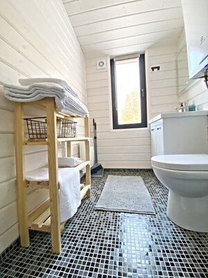 Отдохните с комфортом в «Елли и Пелли» — двух современных домах в скандинавском стиле, расположенных на природе. Каждый дом рассчитан на 4 гостей и предлагает уютную обстановку с индивидуальной парковкой, зоной барбекю и полностью оборудованной кухней. Электрическое отопление и кондиционеры обеспечивают идеальную температуру круглый год. Для истинного расслабления — баня с панорамными окнами, стильной темной парной, каменкой и печью из натурального камня, а также фурако с гидромассажем и хромотерапией (работает круглый год).