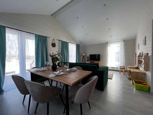 Дом «Бирюзовый» в коттеджном поселке «Грин Лаундж» (Московская область) — идеальное место для отдыха в окружении живописного березового леса, недалеко от Истринского водохранилища. Этот просторный дом с современным дизайном комфортно разместит до 8 гостей, предлагая прекрасные условия для семейного отдыха или встреч с друзьями.