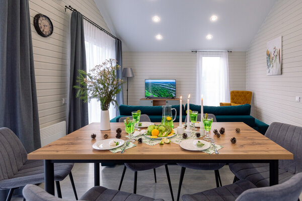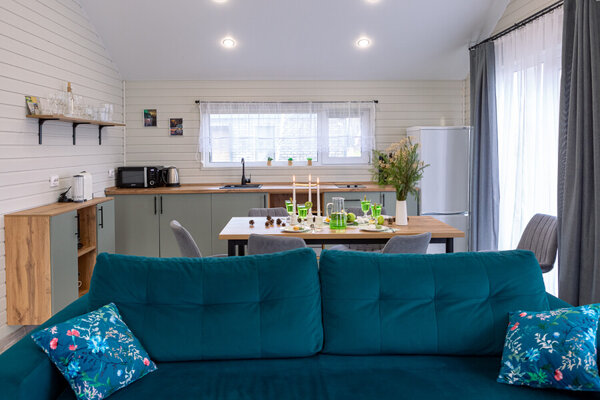 Частный дом «FlatPoint Мятный» в живописном поселке Грин Лаундж — идеальный выбор. Расположенный среди березовых рощ, в шаговой доступности от Истринского водохранилища, он предлагает уединение и комфорт в современном интерьере. К вашим услугам: кондиционер, телевизор, полностью оборудованная кухня (с кофемашиной и посудомоечной машиной), все необходимые удобства для ванной комнаты и зона для барбекю на свежем воздухе.
