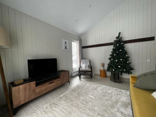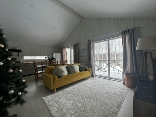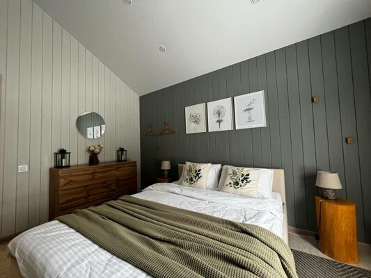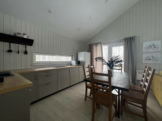 Дом «FlatPoint Солнечный» в коттеджном поселке Грин Лаундж — это уютное жилье, окруженное живописным березовым лесом и расположенное в шаговой доступности от водохранилища. В доме есть все необходимое для комфортного отдыха: кондиционер, холодильник, кофемашина, посудомоечная машина, а также Wi-Fi и телевизор. Гостям предоставляются полотенца, косметические принадлежности и тапочки. На территории обустроена зона барбекю с мангалом и столом для пикника (шампуры включены, уголь и дрова — по желанию). «FlatPoint Солнечный» — прекрасный выбор для спокойного отдыха на природе в кругу семьи или друзей.