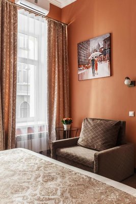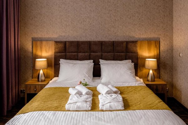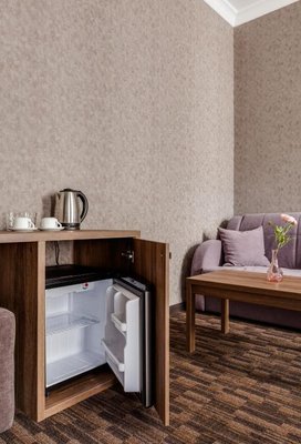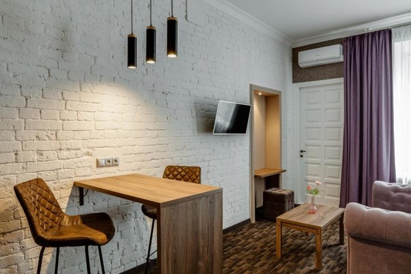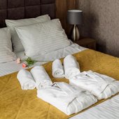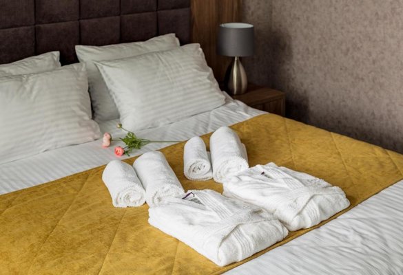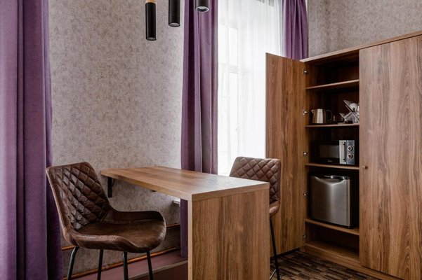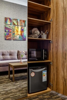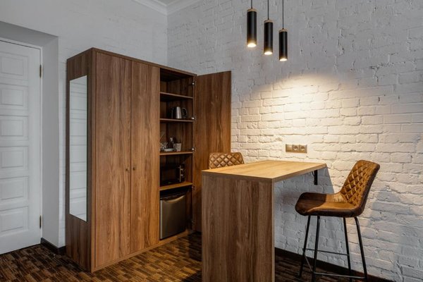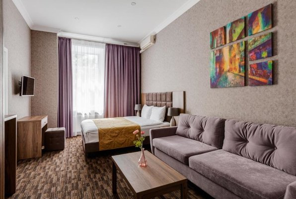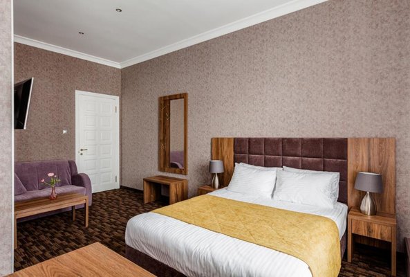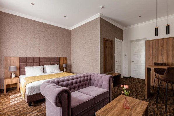 В номере-студио установлены двуспальная кровать и диван-кровать.