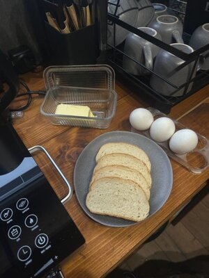 В холодильнике вас будут ждать яйца, сливочное масло и батон.