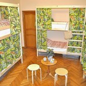 Номера, как и других подобных заведениях, состоят из двухъярусных кроватей, шторок и вешалок. Для того чтобы переночевать, этого достаточно. Есть общая душевая, где можно помыться и туалет. В прихожей можете оставить обувь.