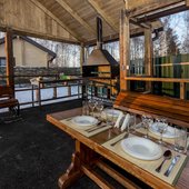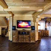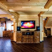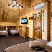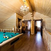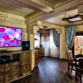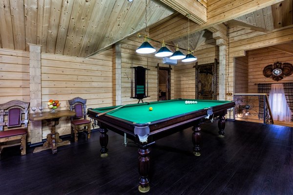 В каждом доме есть Wi-Fi, спутниковое телевидение, музыкальный центр и караоке, сауна, большая гостиная, совмещённая с кухней, душевая и санузел. На втором этаже расположены спальни и зона для досуга (русский/американский бильярд, аэрохоккей).