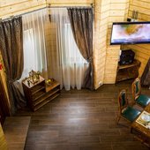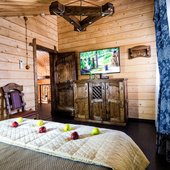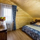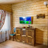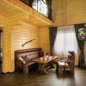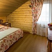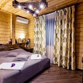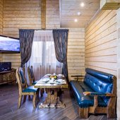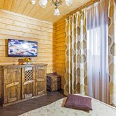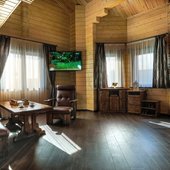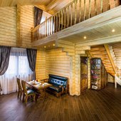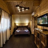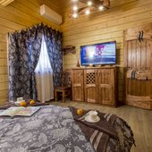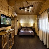К вашим услугам размещение в деревянных двухэтажных коттеджах, где царит уютная домашняя атмосфера. Коттеджи построены по оригинальному проекту из бруса. Комфортабельные дома полностью оборудованы кухнями, кондиционерами, элитной мебелью.