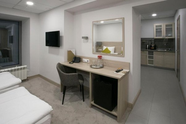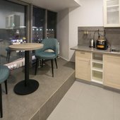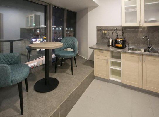 По утрам постояльцам подается завтрак. Формируется он в виде шведского стола. Некоторые апартаменты оборудованы мини-кухней с необходимой посудой и техникой.