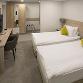 В номерах установлен телевизор и система кондиционирования. В собственной ванной есть душ, туалет, предоставляется фен и туалетно-косметические принадлежности. Комнаты также предусмотрены для людей с ограниченными физическими возможностями.