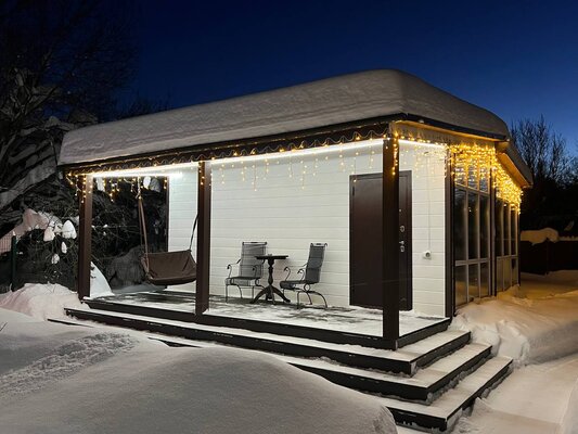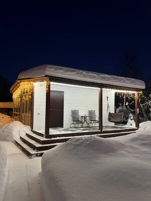 В коттеджах есть отопление, кондиционер, стиральная машина, Smart TV с доступом в интернет и спутниковым телевидением. Утюг доступен по запросу.