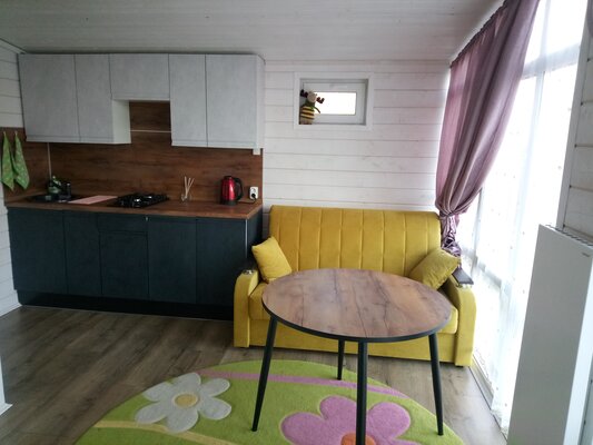 Коттеджи гостевого дома рассчитаны на комфортное размещение до четырех человек и оборудованы всем необходимым для приятного отдыха. К вашим услугам современная кухня с газовой плитой, холодильником, посудомоечной машиной и полным комплектом посуды, а также ванная комната с душем, туалетом и феном. Мы предоставляем свежее постельное белье, полотенца и средства личной гигиены.
