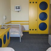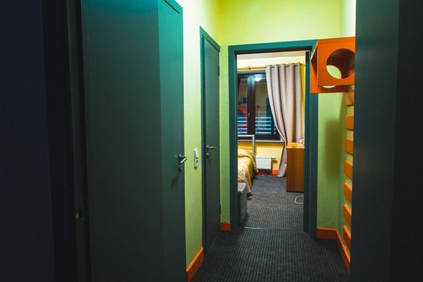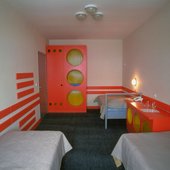 «Нирвана» - небольшой двухэтажный отель на 40 мест (8 пятиместных двухкомнатных блоков с 5 полутороспальными кроватями в каждом блоке). В цокольном этаже здания отеля расположен прокат спортивного инвентаря, оборудованный по последним тенденциям западного спортсервиса: перемещающиеся по рельсам стеллажи, сушилки для обуви, камера хранения, противоскользящее напольное покрытие.