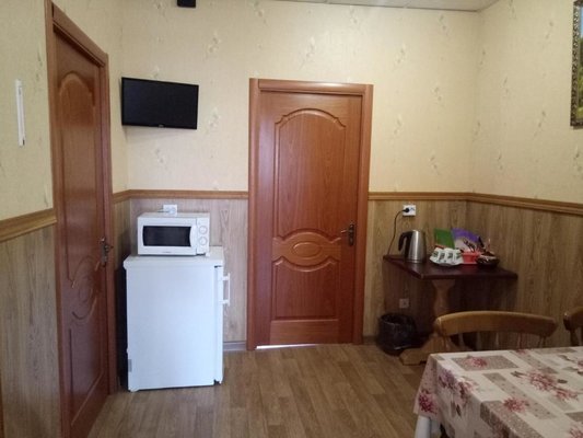 Все номера гостевого дома «Теремок» укомплектованы шкафом и телевизором с плоским экраном, а в некоторых из них обустроен гостиный уголок. В собственной ванной комнате с душем приготовлены бесплатные туалетно-косметические принадлежности.