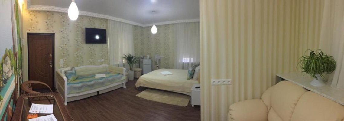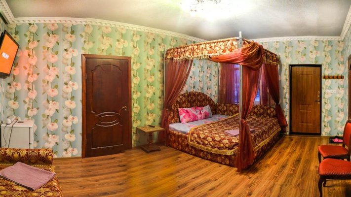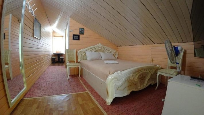 Номера гостевого дома оформлены в классическом стиле и оборудованы телевизором. В ванной комнате предоставляются тапочки и фен. В гостевом доме сервируется завтрак по меню.