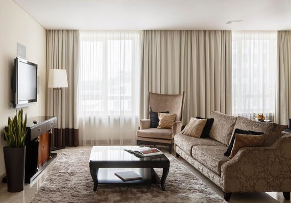 Номерной фонд состоит из 159 номеров, выдержанных в единой цветовой гамме. Каждая комната оснащена всем необходимым для продолжительного размещения. В индивидуальной ванной предоставляется роскошный набор средств личной гигиены, тапочки, полотенца и халаты.