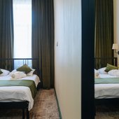 Номерной фонд представлен комфортными двух и трехместными номерами. В каждом имеется удобная мебель, телевизор и собственная ванная комната со всем необходимым. Доступ к Wi-Fi всем проживающим предоставляется абсолютно бесплатно. Кроме того, в "Apple Dream Hotel" разрешается проживание с домашними животными.