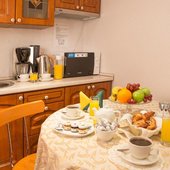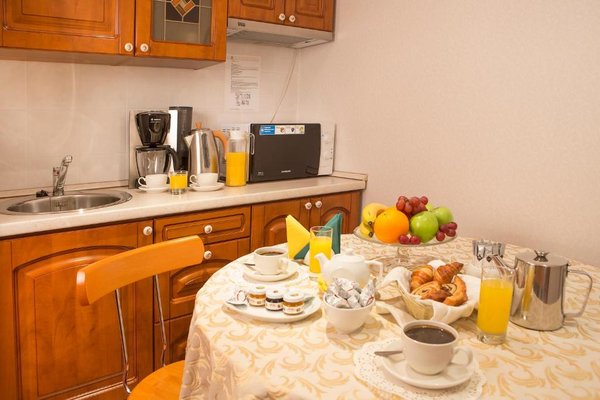 Во всех номерах есть мини-кухня, где можно самим готовить еду. Завтрак проживающие могут заказать в номер, за дополнительную стоимость.