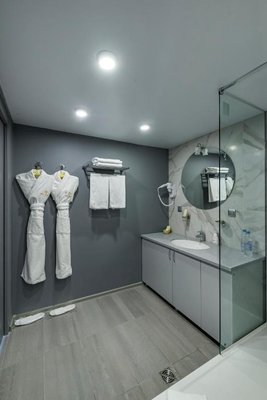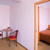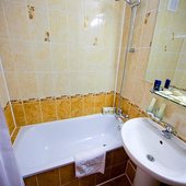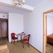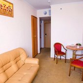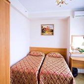 Номера достаточно светлые и уютные. Каждый оснащен всем необходимым для комфортного проживания — телефоном, холодильником, кондиционером и телевизором.
