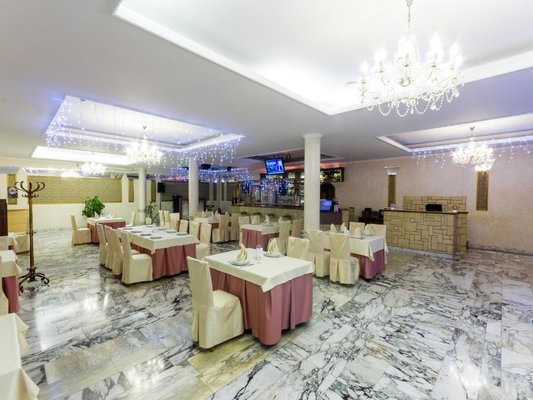 В гостинице «Аструс» имеется три ресторана с разнообразным меню на любой вкус. По вечерам в баре-ресторане «Пивной дворик» постояльцы могут насладиться напитками и отведать вкусные закуски.