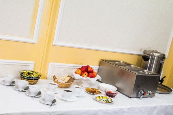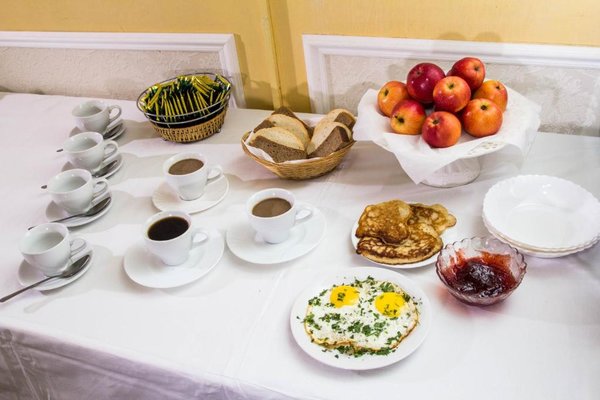 Есть собственный ресторан, в котором по меню можно заказать блюда русской и европейской кухни. Также в пешей доступности работает множество недорогих заведений общественного питания и продуктовые магазины.
