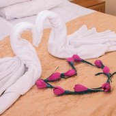 Для проживания предоставляются звукоизолированные номера, разделенные на несколько категорий. В каждой комнате есть удобные кровати, телевизор и кондиционер. Из окон улучшенных апартаментов открывается вид на парк. В собственной ванной можно воспользоваться набором полотенец.