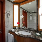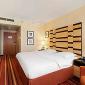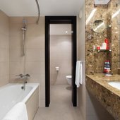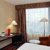 Номерной фонд «AZIMUT Hotel Moscow Olimpic» представлен уютными номерами, каждый из них оснащен всем необходимым, что может понадобиться во время отдыха. В стильных апартаментах установлены удобные кровати, ванная комната и техника. В каждой из них есть телефон, жк-телевизор, мини-бар, сейф и предоставляются гладильные принадлежности. Абсолютно во всех номерах обустроено удобное рабочее место со всем необходимым для продуктивной работы, включая даже самые мелкие канцелярские принадлежности. На всей территории работает высокоскоростной интернет Wi-Fi. Например, из номеров категории «полулюкс» открывается отличный панорамный вид на город, а оставшееся пространство разделено на спальню и жилую зону с мягкой мебелью. А вот с «люксов» открывается вид на Екатерининский парк и СК «Олимпийский».
