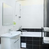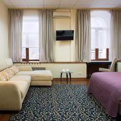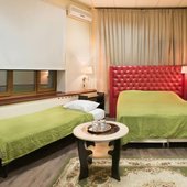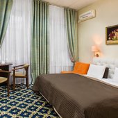 Номерной фонд представлен просторными, уютными номерами, выполненными в приятной теплой цветовой гамме. Все помещения оснащены: мягкой мебелью для сна, необходимой техникой, собственной или общей ванной комнатой. Из окон открывается вид на город, пруд и парк.