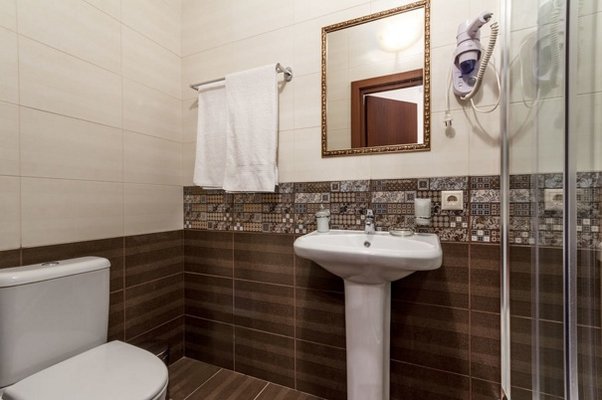 Для удобств гостей предлагается 10 стильных номеров, каждый оснащен двухспальной кроватью, ортопедический матрасом, телевизором, ванной комнатой, феном и туалетными принадлежностями.