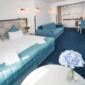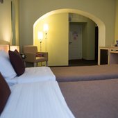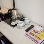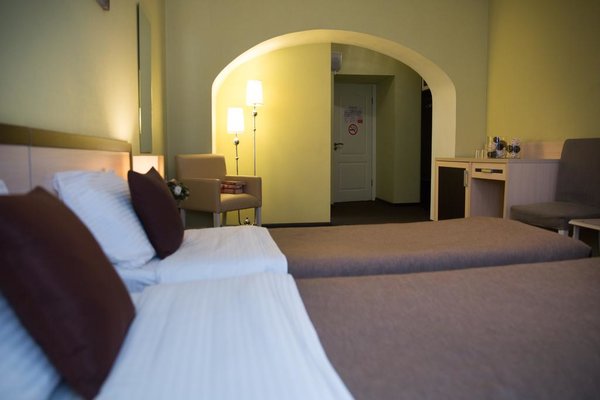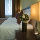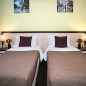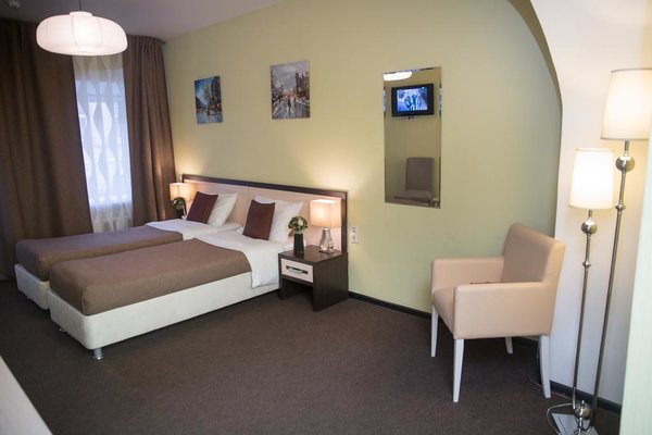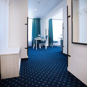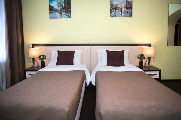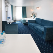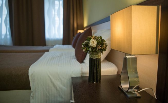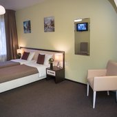 Комфортабельные номера оборудованы всем необходимым как для деловых поездок, так и для туристических. В них есть — кондиционер, телевизор, комплект полотенец и косметические принадлежности.