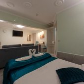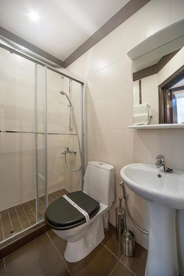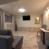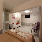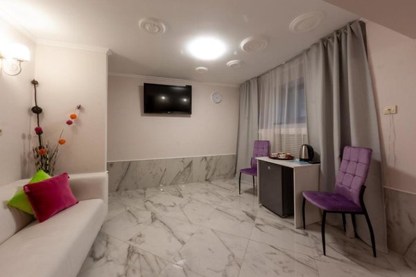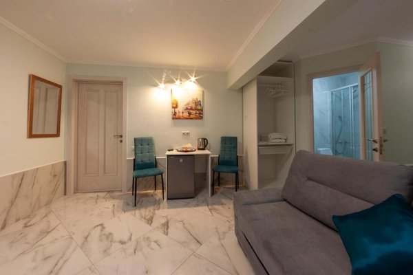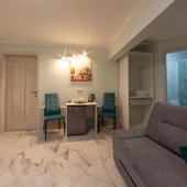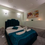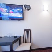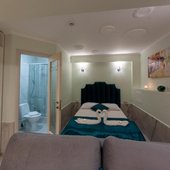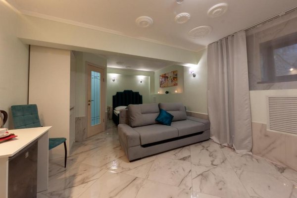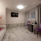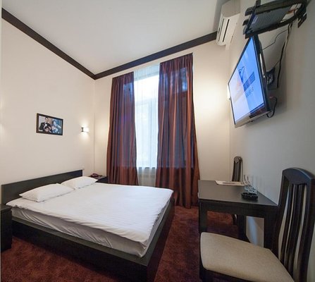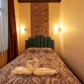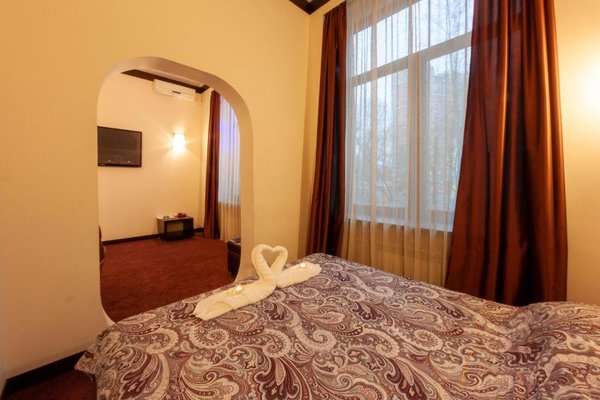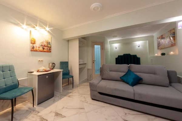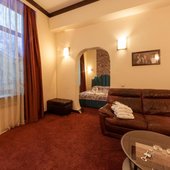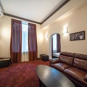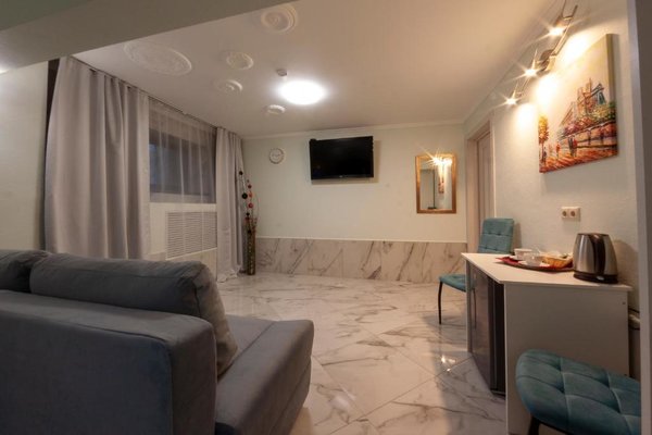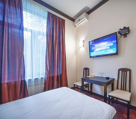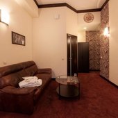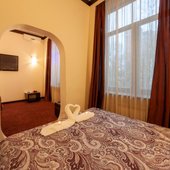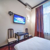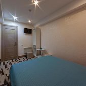 Гостям предлагают комфортабельные, полностью меблированные номера класса «Комфорт» (двуспальные кровати, мягкая мебель, шкафы, тумбы). Апартаменты просторные светлые, с удобствами (санузел, душевая кабина). Есть ТВ, сплит-система, Wi-Fi. Из окон открывается вид во двор и на город.