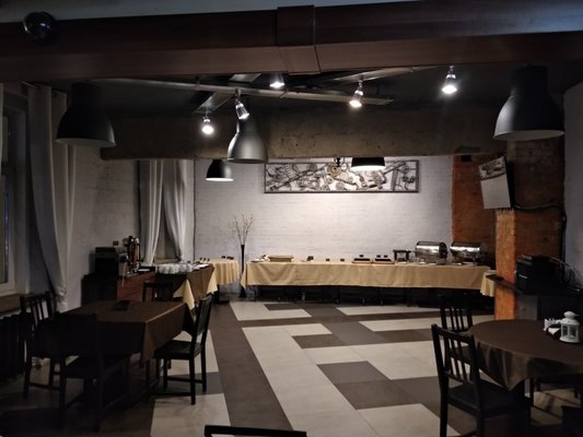 Питание организовано в ресторане, где для гостей готовятся блюда традиционной русской и европейской кухни, а в баре можно заказать различные напитки.