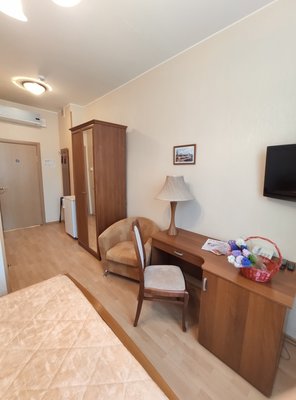Здесь всегда рады гостям и с комфортом размещают в полностью оборудованных для комфортного проживания и отдыха номерах. Каждый из них, независимо от категории, выполнен в светлых тонах. Во всех доступен бесплатным Wi-Fi.