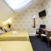 Номерной фонд представляют уютные и светлые номера различной категории, к ним относится «стандарт» и «люкс». В каждом из номеров есть собственная ванная комната с душем, в каждом из них установлена удобная мебель и жк-телевизор. Интернет-Wi-Fi раздается бесплатно на всей территории гостиницы.