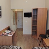 В числе удобств каждого номера — телевизор с плоским экраном.