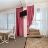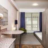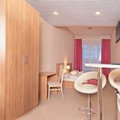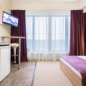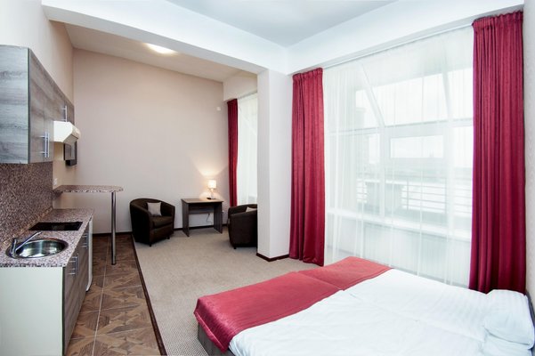 Номера имеют собственную ванную комнату с современной сантехникой, где так имеются косметические наборы, полотенца, встроенный фен. Сами номера помимо таких стандартных удобств как телевидение, кондиционер, холодильник, так же имеют небольшую кухню-нишу. Во всех номерах бесплатный высокоскоростной Wi-Fi. Допускается размещение с домашними животными.