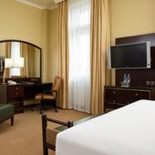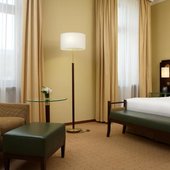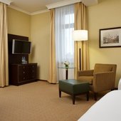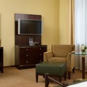 Все номера оформлены в современном стиле. В каждом номере установлен телевизор, рабочая зона с письменным столом, набор для приготовления чая и кофе, а также гигиенические принадлежности.