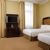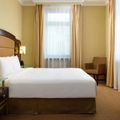 Отель «Хилтон Москва Ленинградская» расположен в одной из знаменитых сталинских высоток в центральной части столицы.