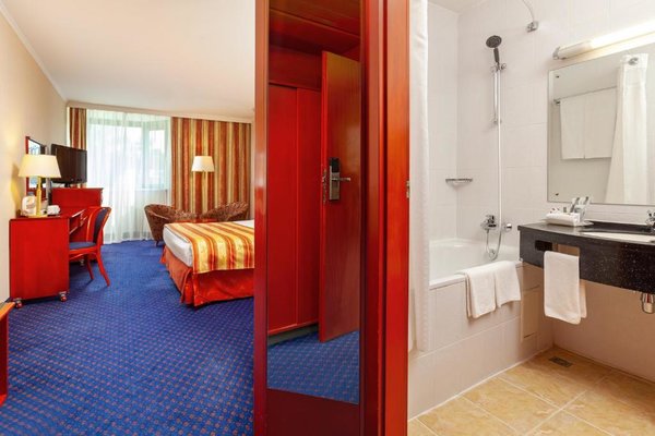 В номерах отеля «Holiday Inn Виноградово» установлен письменный стол и обустроен гостиный уголок. В числе удобств телевизор со спутниковыми каналами и бесплатный Wi-Fi.
