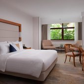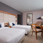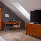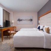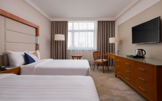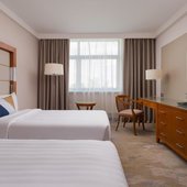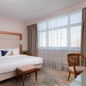 Номерной фонд гостиницы достаточно обширен и располагает несколькими категориями, каждая из которых располагает всем необходимым набором мебели и техникой. Также для проживающих обустроено рабочее место, что будет особенно полезно для тех, кто прибыл в столицу с деловым визитом.