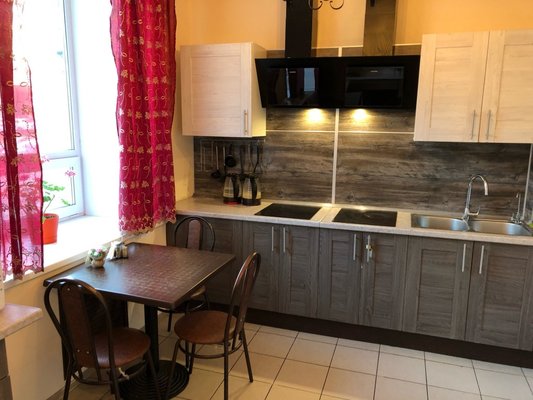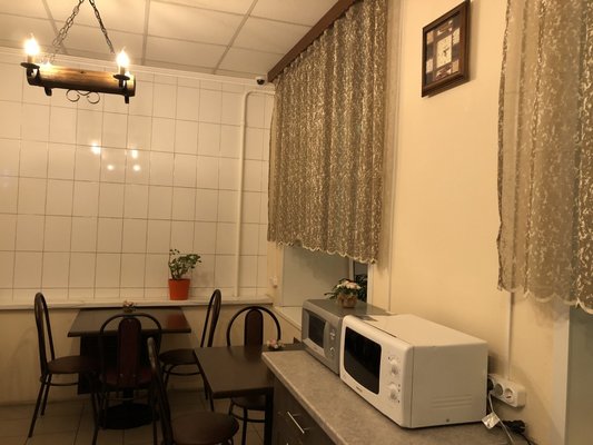 На кухне возможно самостоятельно приготовить еду. Для этого есть необходимая бытовая техника, посуда, кухонная утварь. Рядом с гостиницей работают магазины, гипермаркет, кафе с большим ассортиментом и выбором блюд.