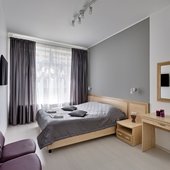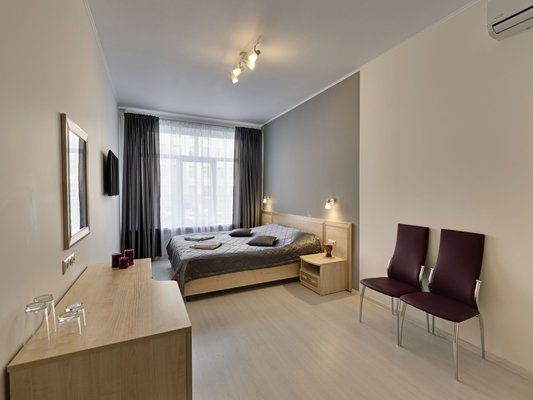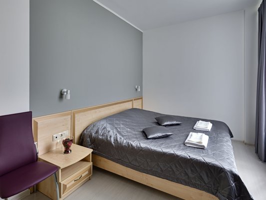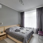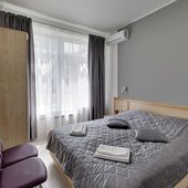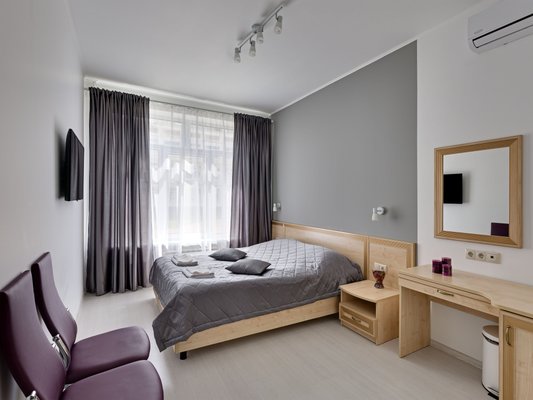 К услугам 30 стильных номеров выполненные в серых тонах и оснащенные кондиционером, телевизором, индивидуальными гигиеническими принадлежностями. Также предоставляется беспроводной доступ к сети Wi-Fi.