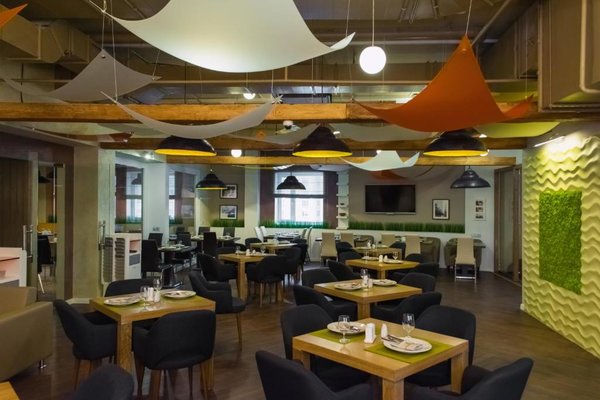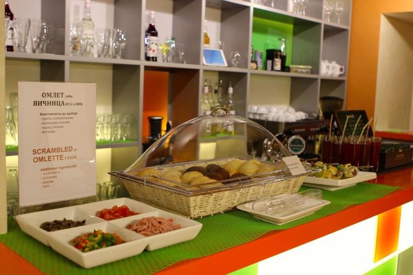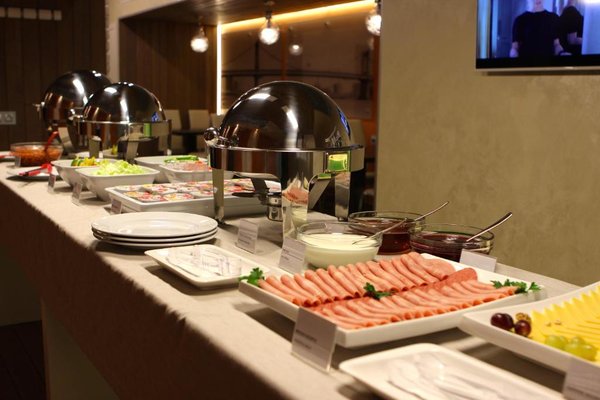 По утрам в ресторане накрывается завтрак «шведский стол», в обед подается бизнес-ланч. Также гости могут заказывать доставку еды и напитков.