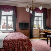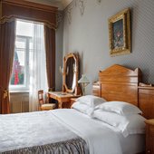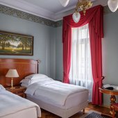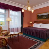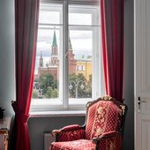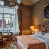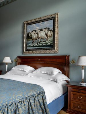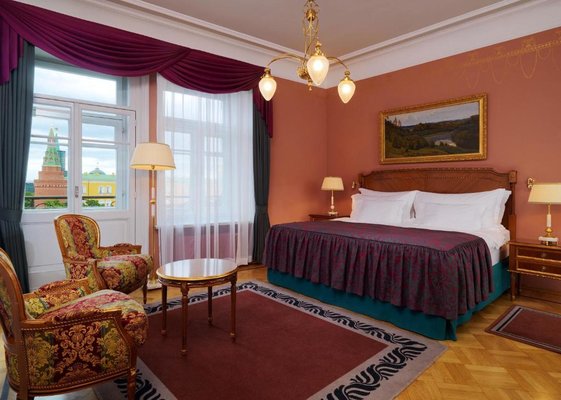 В номерном фонде отеля насчитывается 202 шикарных номера. Все они оформлены в классическом стиле и обустроены старинной, качественной мебелью, удобными спальными местами, современной техникой и мини-баром. В собственной ванной комнате обязательно есть халат. Из окон открывается неповторимый вид на Кремль.