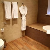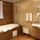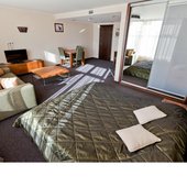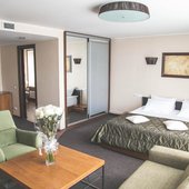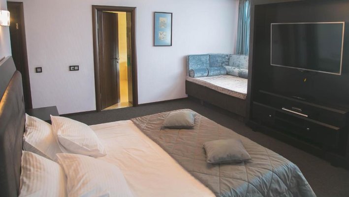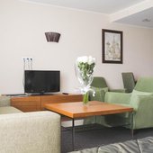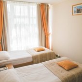 Номера оформлены в светлых тонах и классическом стиле. В каждом имеется необходимая мебель для отдыха или работы, а также установлена современная техника для комфортного проживания.